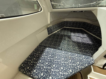 • Aft cockpit sun loungers – perfect for relaxing at anchor • Gas hob • Seating area with pedestal table • Double berth in the bow • Heads / portaloo when infill cushions removed • Pilothouse with retractable sliding sunroof – enjoy open air on sunny days or stay fully enclosed when needed