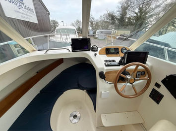 2008 Jeanneau Merry Fisher 625 Légende – £21,500 VAT Paid The Jeanneau Merry Fisher 625 Legende is one of the UK’s most popular compact pilothouse fishing and cruising boats, combining practical deck space with the comfort of an enclosed wheelhouse and overnight accommodation. This 2008 example is presented in excellent condition and is powered by a reliable Mariner 115 EFI four-stroke outboard, freshly serviced in January 2026, offering strong performance and economical running. The boat benefits from a very well-equipped specification, including two modern 9” chartplotter/fishfinder units installed in 2024 from Simrad and Lowrance, making her ideal for fishing, coastal cruising, and navigation. Comfort on board is enhanced with a diesel heater, allowing extended use throughout the seasons, while the electric windlass anchor system makes anchoring simple and safe. Inside the pilothouse there is a comfortable seating and table area, with good visibility from the helm. Forward, the two-berth cabin provides practical overnight accommodation along with a chemical heads compartment. The aft cockpit offers excellent social and fishing space, featuring a bench seat for four and a removable pedestal table, while an aft bimini with frame provides protection from the elements when required. This well-maintained Merry Fisher is ready to go and available immediately, representing an excellent opportunity to acquire a versatile and highly regarded pilothouse cruiser. Key Features • 2008 Jeanneau Merry Fisher 625 Legende • Mariner 115 EFI Four-Stroke Outboard – Serviced January 2026 • 9” Simrad Fishfinder / Chartplotter (2024) • 9” Lowrance Fishfinder / Chartplotter (2024) • Electric windlass anchor • Aft cockpit bench seating with pedestal table • Pilothouse table and seating area • Gas hob • Chemical heads • Two-berth cabin • Aft bimini with frame Available for immediate viewing.